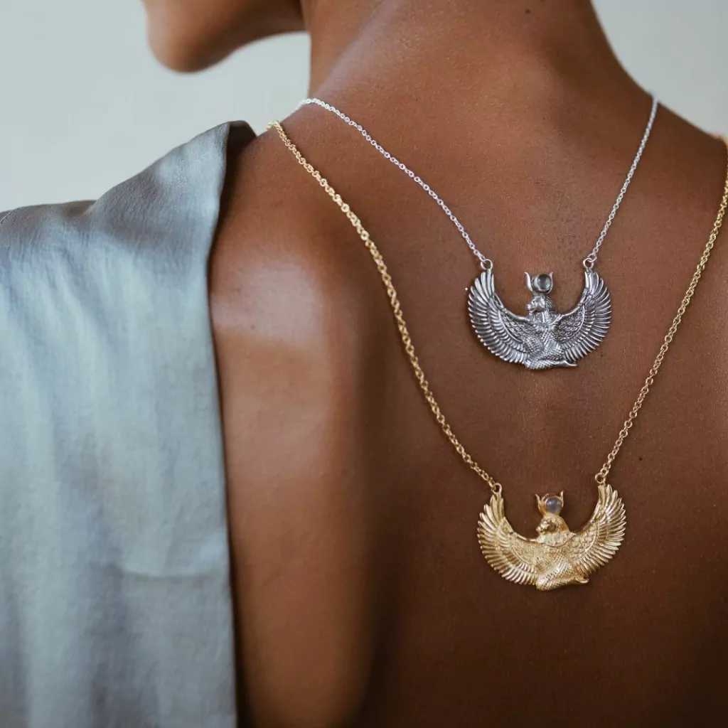 Descubra o poder de Sekhmet e faça sua declaração única com este colar exclusivo. Adquira agora e incorpore a força da deusa em seu estilo.
